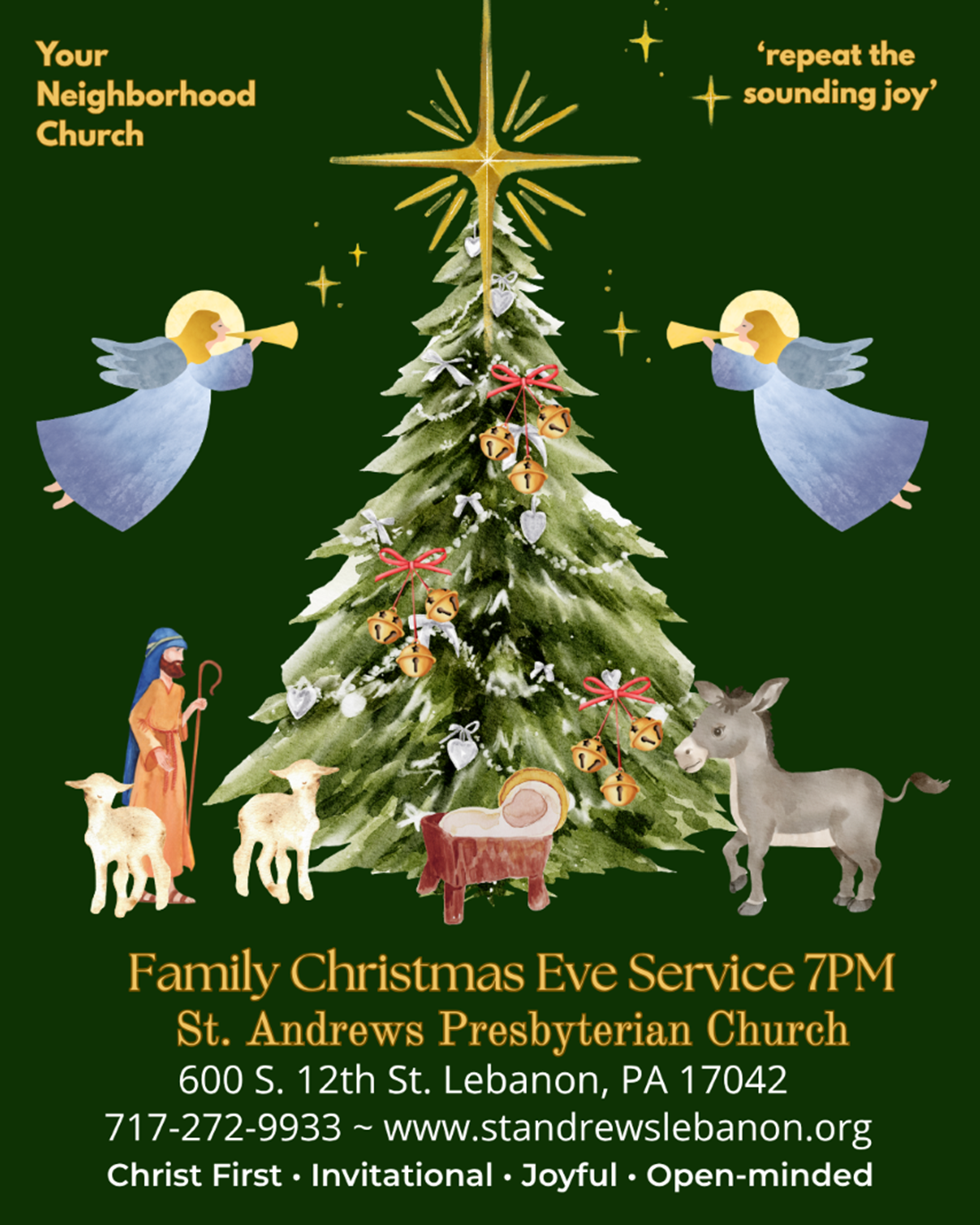 Join us for a Family Christmas Eve Service at 7PM on Dec 24th Carols, Candles & Cookies! Merry Christmas!